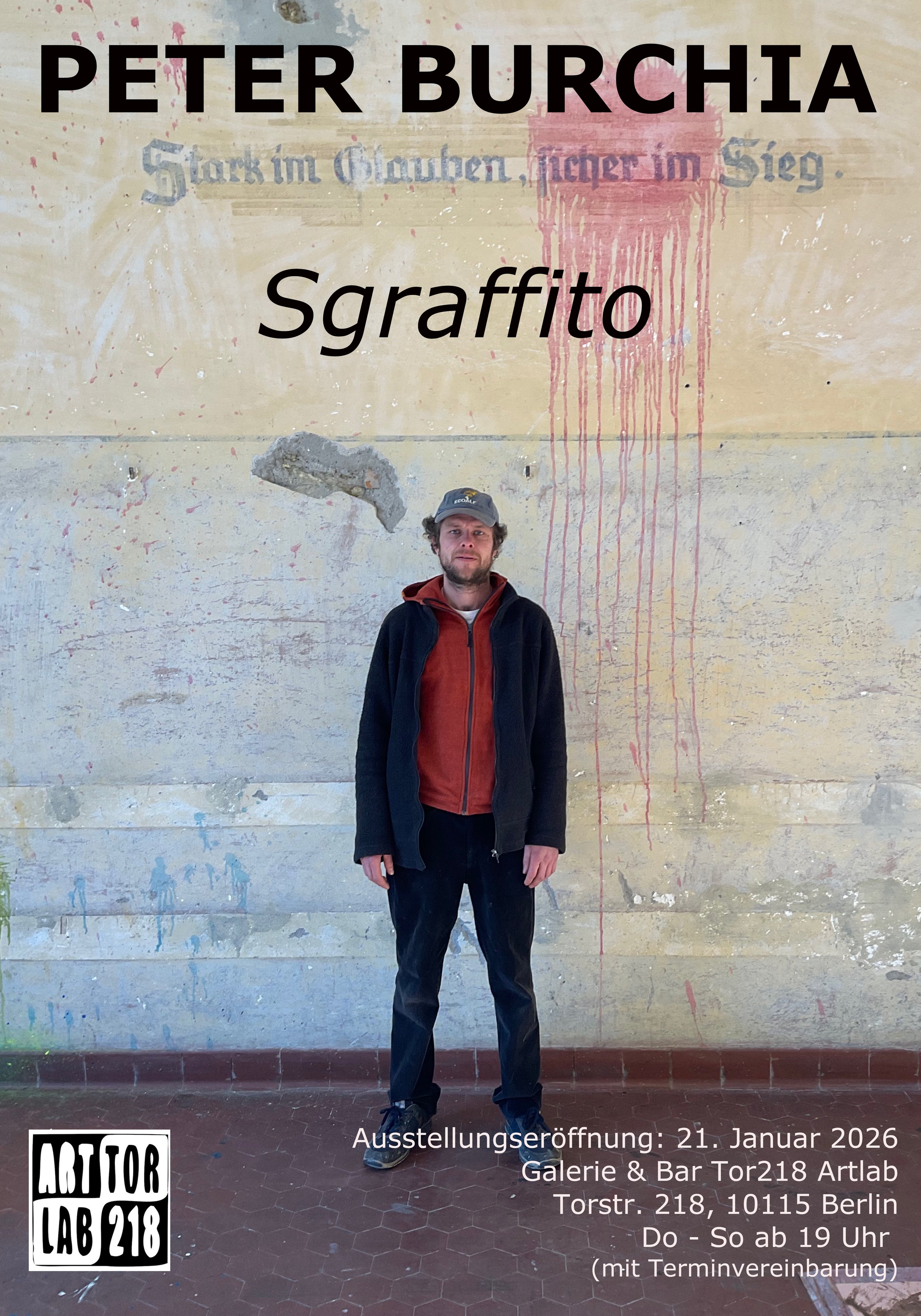 Il pittore e musicista Peter Burchia è nato a Bolzano nel 1994. Autodidatta, Burchia inizia a dipingere sin dall’infanzia, avvicinandosi progressivamente alla musica folk, come solista e come membro di vari gruppi, tra cui gli Shanti Powa. La sua produzione pittorica si contraddistingue per un linguaggio fatto di grafismi taglienti, personalissime sigle testuali e numeriche, insistite deformazioni, vivaci contrasti di colore e accostamenti di tecniche e materiali variegati, questi ultimi spesso di estrazione comune, se non di risulta. In dialogo con l’eredità stilistica e tematica della costellazione espressionista, il portato crudo, aggressivo e finanche dissacrante dell’opera di Burchia può riverberare certe sperimentazioni Dada, Art Brut, Cobra o Fluxus, ma anche quello biografico ed esistenziale dell’Informale. Tratto particolarmente significativo dal punto di vista del processo creativo di Burchia risulta poi una certa attinenza al principio dell’automatismo di matrice surrealista, che si esplicita nella modalità diaristica, seriale e vorticosa con cui realizza i suoi cicli pittorici o le sue incisioni. Altro aspetto distintivo della pittura di Burchia risiede in una certa assonanza con l’ambito della Graffiti Art, di cui condivide non solo tecniche, materiali e linguaggi, ma anche l’espansione su scala architettonica della sua pittura, come dimostrato dalle sue prove più recenti, in cui ha sperimentato la tecnica secolare dello “sgraffito”. Vero e proprio animatore artistico e culturale del territorio alto-atesino, Burchia ha partecipato a una serie di mostre collettive e personali.